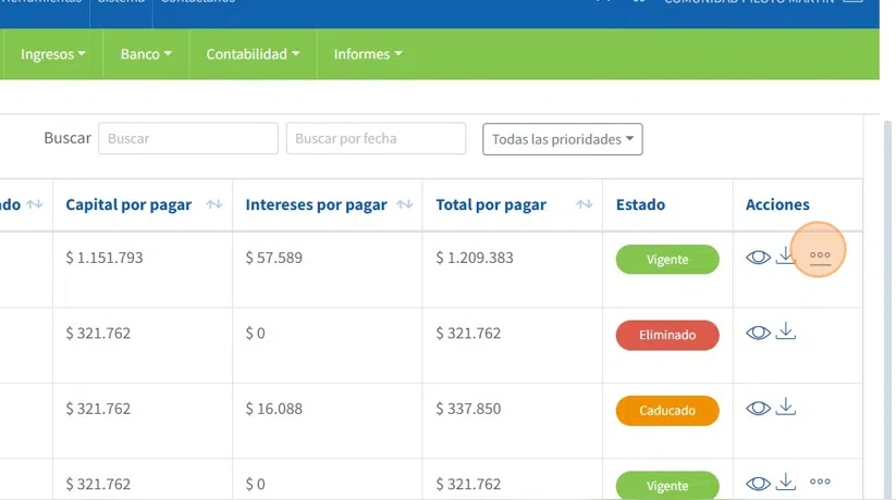 14. En el ícono de 3 puntos, se encuentran la opcion de Enviar: el convenio se puede hacer llegar al copropietario y/o al Comité