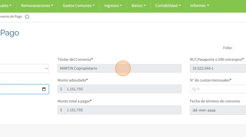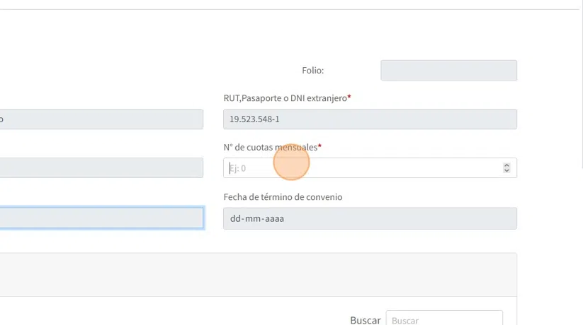 5. Ingrese la cantidad de cuotas pactadas del convenio, esto retorna la fecha de término del convenio.